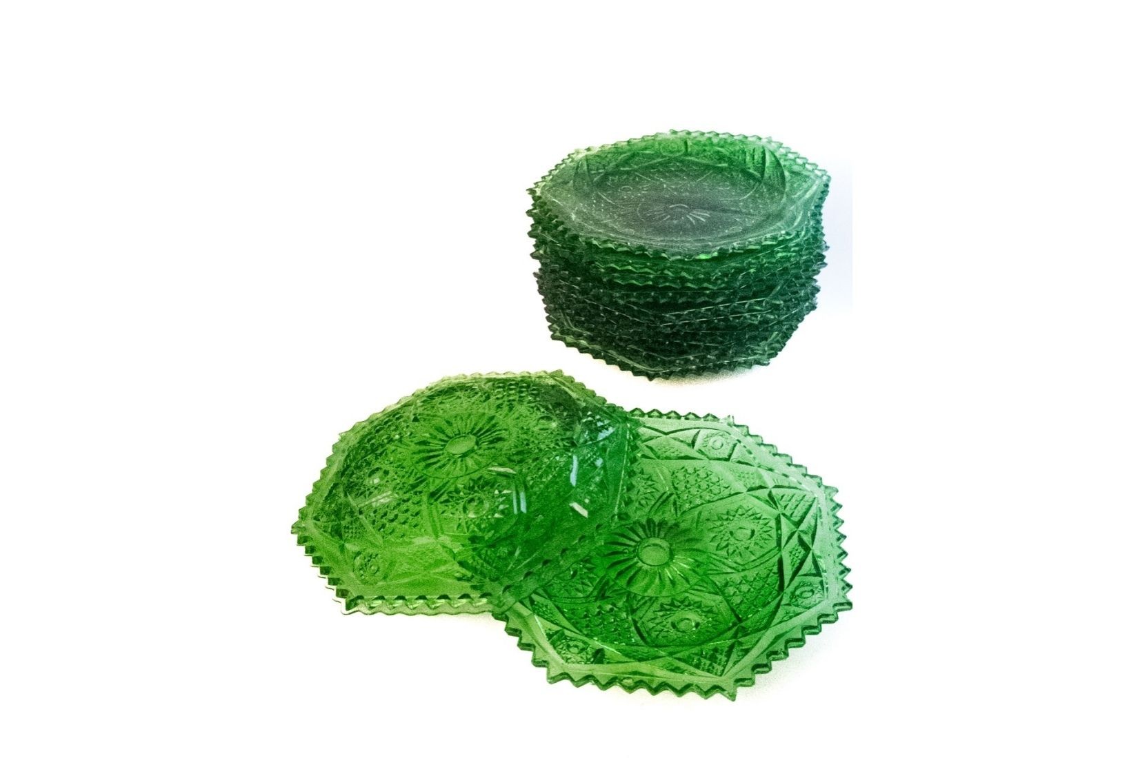 Platos de vidrio prensado. Artesano desconocido. Col. Marie Thérèse Hermand de Arango. (Foto Patricia Suárez).