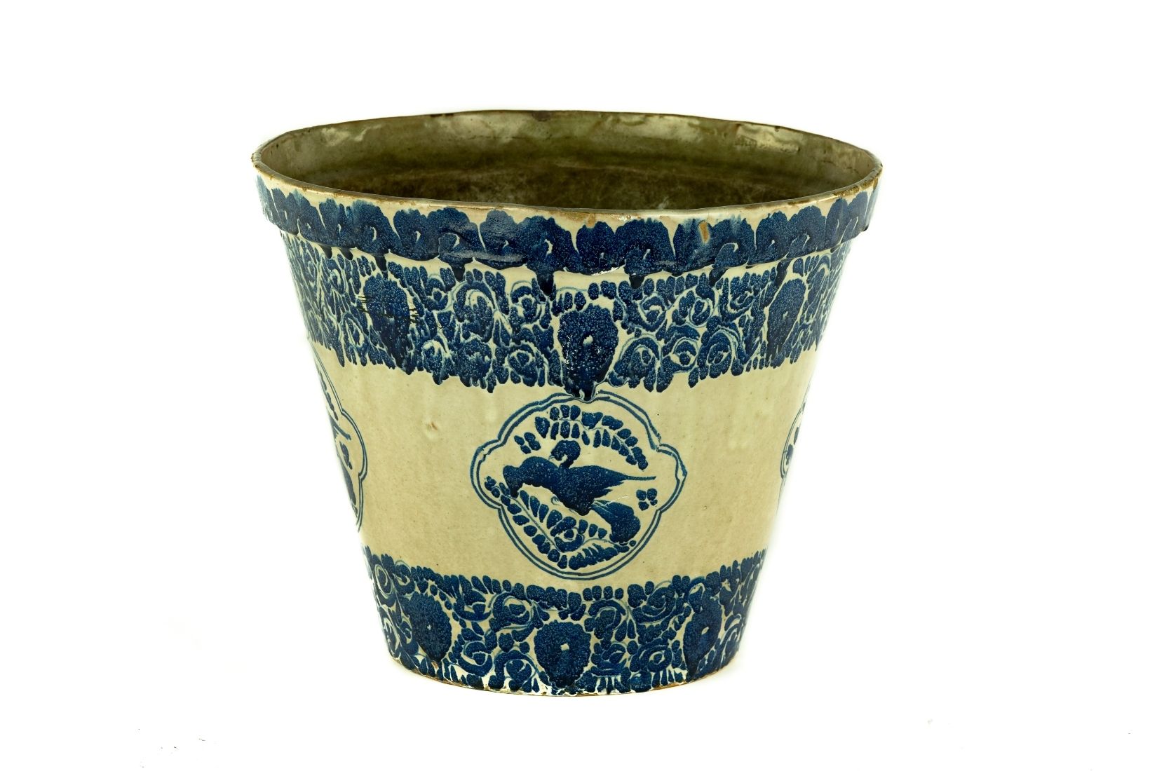 Maceta de talavera decorada al pincel con azul cobalto. Artesano desconocido. Puebla, Pue. Principios S. XX. Donantes Marcel Hermand y Lily H. Gibara de Hermand. Col. Marie Thérèse Hermand de Arango. (Foto: Nicola Lorusso).