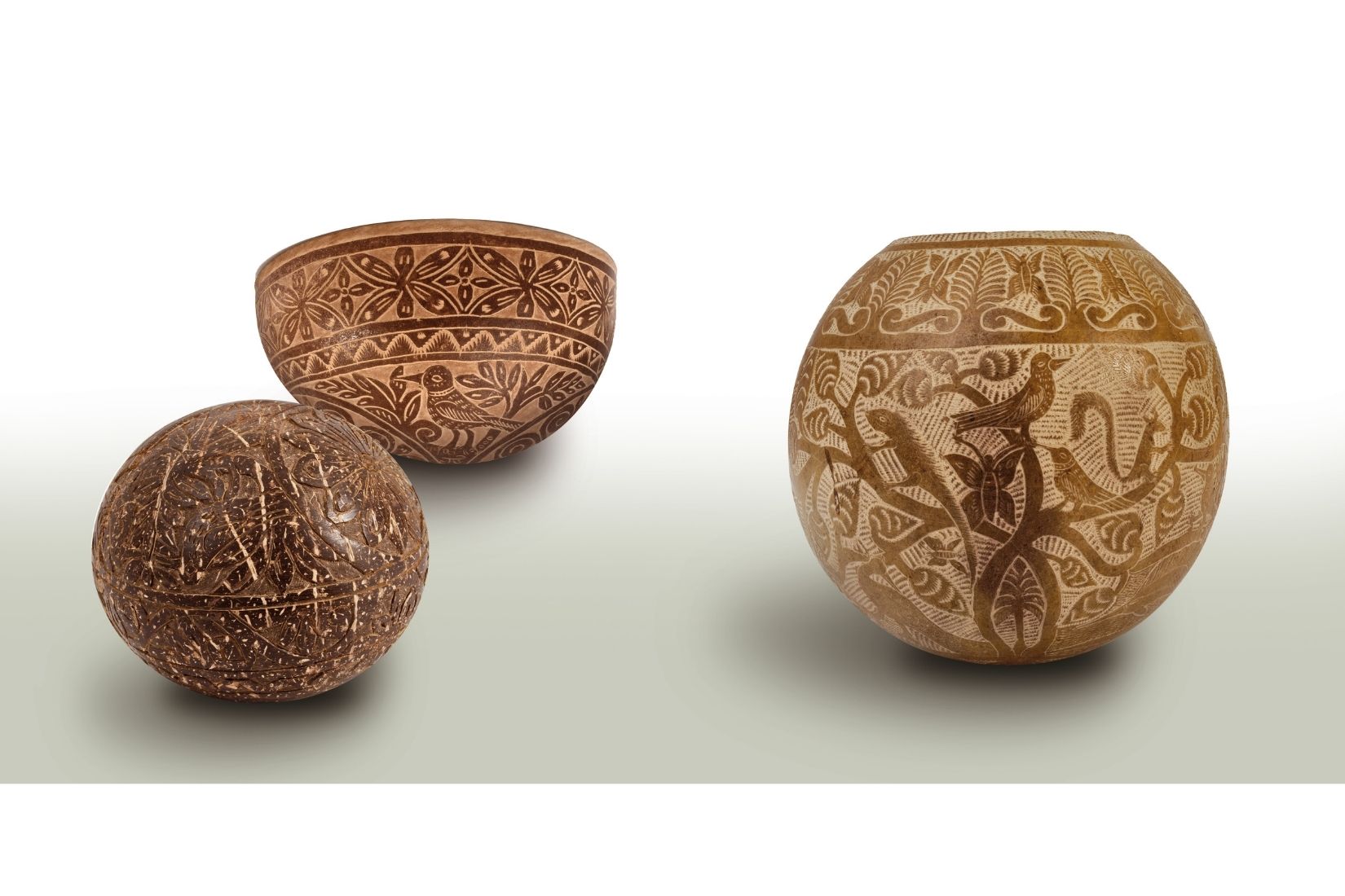 Cuencos. Jícaras y coco tallados y labrados a mano. Artesano José Castellanos Rabanales. Jalpa de Méndez, Tab. Col. del autor. (Foto: Carlos Contreras de Oteyza).