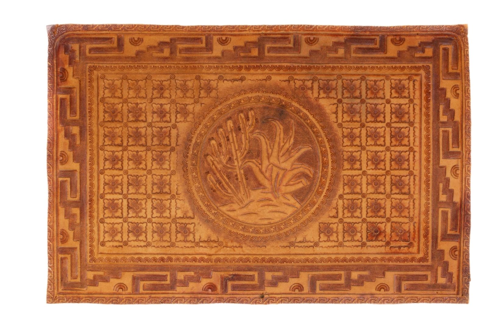 Hay dos grandes capítulos en el arte de la talabartería mexicana: el labrado y el bordado de la superficie de la piel. Variados instrumentos se utilizan en el trazado, el alisado y el suavizado que anteceden al calado, cincelado y repujado con los que se obtiene el labrado. El bordado con hilos de oro y de plata, el mexicanísimo chumiteado con lana roja y negra, fundamentalmente, y el piteado –de gran presencia nacional–, le imprimen un sello inconfundible a esta expresión de arte decorativo. Es habitual que se aplique más de una técnica en un solo objeto. Los motivos florales dominan el dibujo. En su talabartería, es evidente que México cultiva el barroco desde antes del barroco.