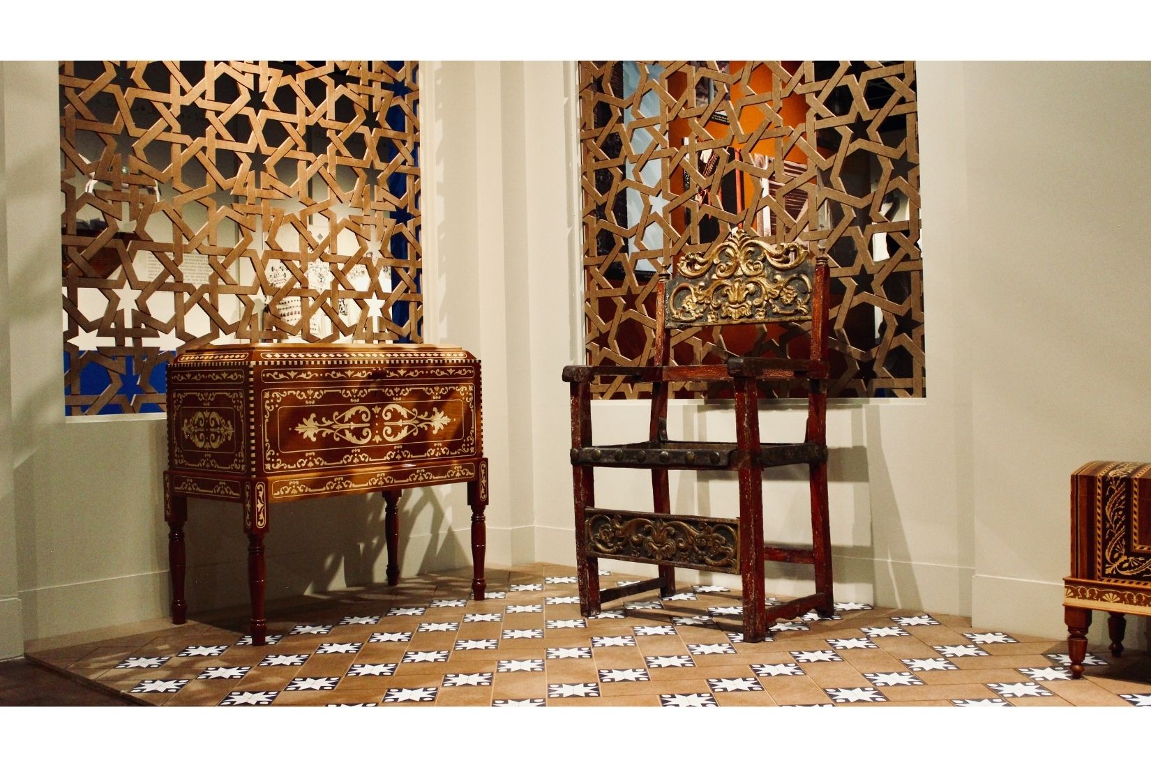 Bernal Díaz del Castillo da testimonio de que entre los regalos que Hernán Cortés hizo al emperador Moctezuma había “una silla con entalladuras de taracea … luego Cortés ordenó que se enviase aquella silla en que se asiente el señor Moctezuma … para cuando le vaya a ver y hablar”. El Lienzo de Tlaxcala ilustra a Cortés sentado en esa silla taraceada, retrato indeleble del primer mueble mudéjar en México. Este estilo, como arte y diseño de origen islámico que llega a América desde Andalucía, sincretiza el mestizaje entre lo hispánico –de por sí producto de mestizajes remotos– y lo musulmán –que apenas disimula los propios–, para acabar mezclándose una vez más con el gusto mexicano.